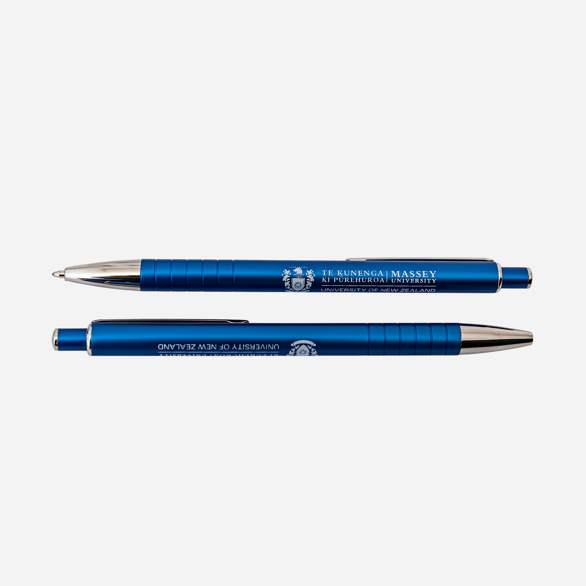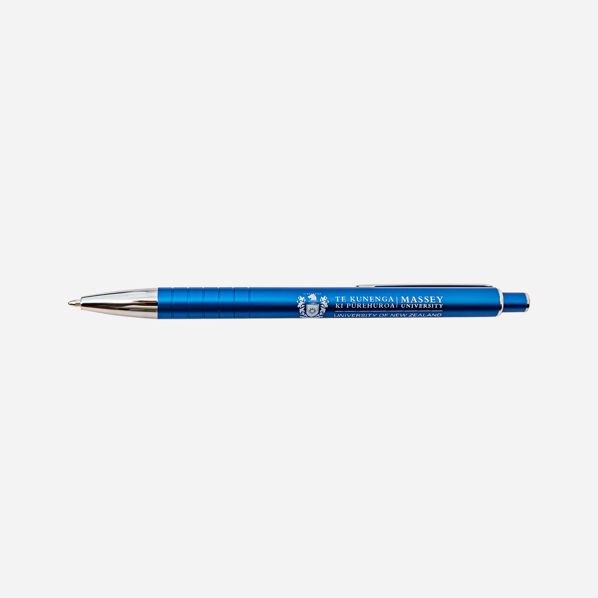 - Retractable royal blue aluminium ballpoint pen with a matte anodised barrel